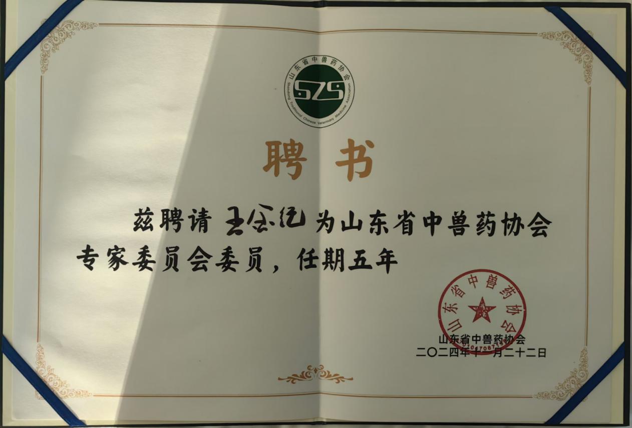 本次會議還選舉產(chǎn)生了會長、副會長等多家單位,并確定了秘書長、監(jiān)事長等人選,我公司技術(shù)總監(jiān)王金紀(jì)被聘請為山東省中獸藥協(xié)會專家委員會委員。